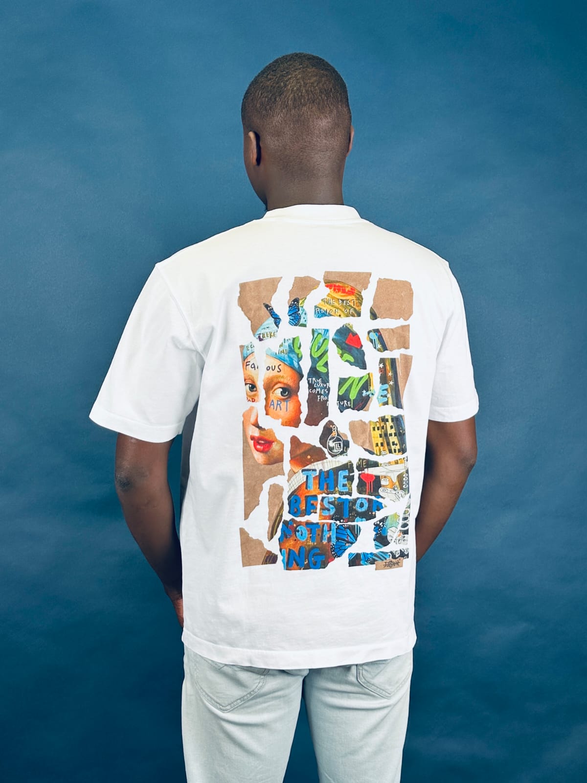 The torn and fragmented look of the design embodies the idea that destruction leads to creation. Each torn piece reveals visual and textual layers, blending classical portraiture, pop art, and street art. This elegant and timeless reinterpretation of Vermeer's Girl with a Pearl Earring contrasts with the raw kraft paper in the background, recalling the aesthetic of torn posters and the raw energy of urban art. This fusion of classicism and modernity, sophistication and chaos, reflects the very essence of JISBAR's universe, where art constantly reinvents itself through layering and transformation.